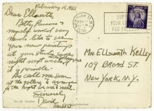 Ellsworth Kelly, paintings 1951-1956 at Betty Parsons Gallery opens May 21 through June 9.